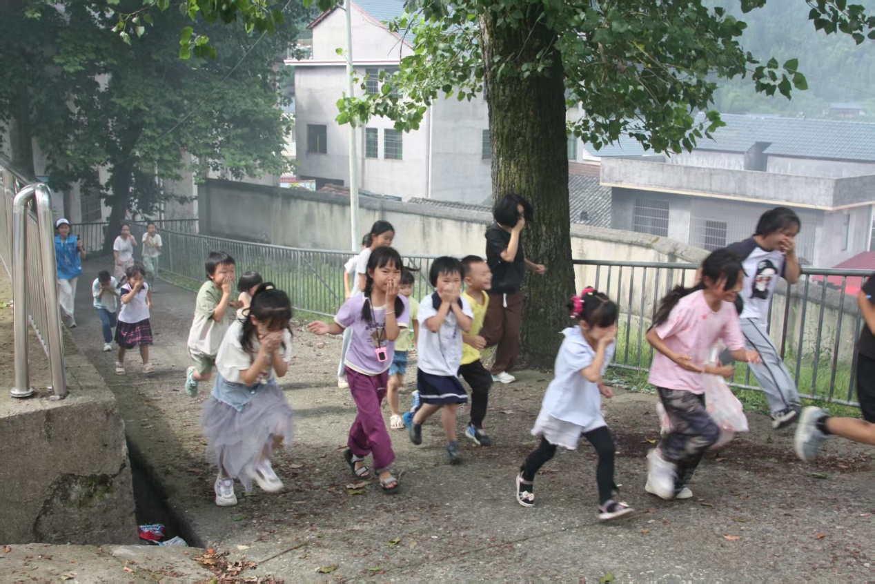 圖為學(xué)生有秩序的向安全地帶奔跑 通訊員 李舒旸 供圖