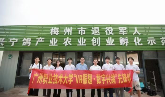 數字興鴿:借數字技術發力,讓鄉村振興展翅 2025年7月7日至7月13日,廣州職業技術大學在共青團興寧市委和“雙百行動”駐興寧工作隊副隊長劉煒的牽線支持下,“VR振翅·數字興鴿”先鋒隊赴廣東省梅州市興寧市葉塘鎮和龍田鎮,以“雙百行動”為支點,依托“百千萬工程”突擊隊力量,為當地肉鴿產業注入強勁的數字動能。團隊運用虛擬現實(VR)與超高清影像技術,助力興寧鴿產業突破傳統發展瓶頸,探索鄉村振興新路徑。