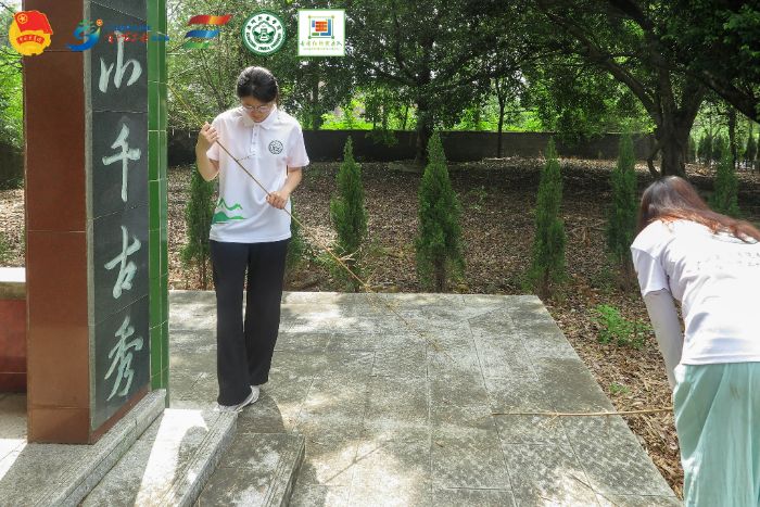 七月的風(fēng)裹挾著熱忱,初心在歲月中愈發(fā)篤定。古圍紅耕突擊隊(duì)隊(duì)員在村委委員黃云龍的帶領(lǐng)下,來(lái)到那座承載著革命記憶的思源亭。隊(duì)員們循著歷史的脈絡(luò)駐足沉思,以躬身之舉守護(hù)英雄印記,于無(wú)聲處感悟“思源”二字的千鈞重量。