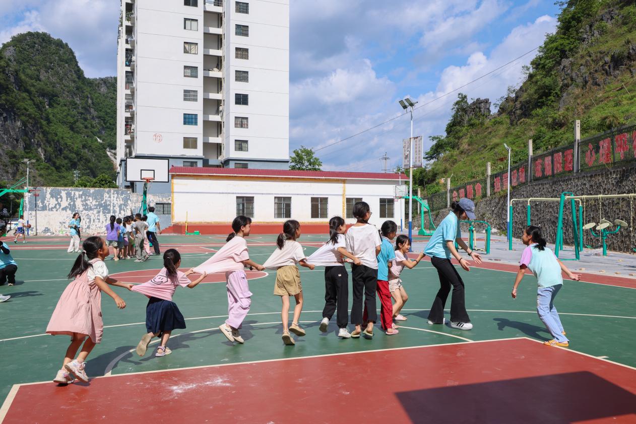 老鷹抓小雞孩子們玩得不亦樂乎。廖雨琪 供圖