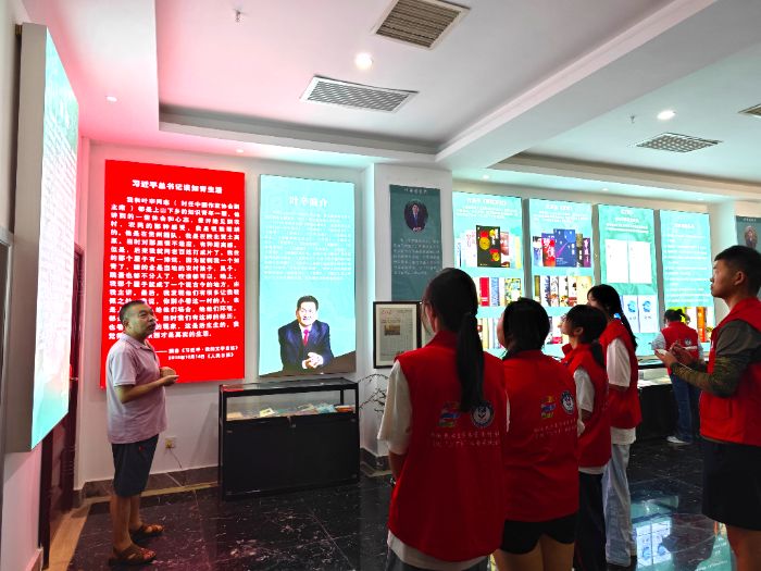 紅色教育“思政課”:追尋民族英雄足跡解碼民族團結密碼 次日,實踐團走進荔波縣玉屏街道,通過“紅色教育+文化探尋+實踐宣講”的多元形式,在永濟泉社區、鄧恩銘烈士紀念館等地開展活動。實踐團首先來到鄧恩銘烈士紀念館、恩銘廣場及大榕樹,在講解員引導下,深入了解鄧恩銘烈士的革命事跡。鄧恩銘作為貴州荔波水族杰出代表,是中國共產黨創始人之一,為民族解放事業獻身,其壯舉生動詮釋了中華民族共同體理念。實踐團成員劉婷感慨:“紅色基因里的民族團結精神,比任何書本都更震撼人心。”隨后實踐團走進葉辛荔波文學院,探尋文學創作與民族團結的聯系。工作人員介紹道,葉辛筆下各民族攜手奮斗的故事,正是鑄牢中華民族共同體意識的生動范本。期間,成員們還向工作人員發放民族團結宣傳手冊,宣講“六個相互”,促進民族理論傳播與紅色血脈傳承相融合。