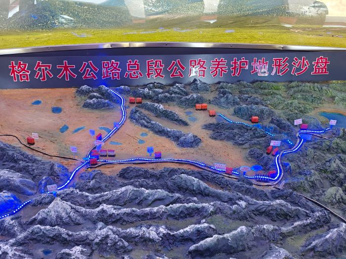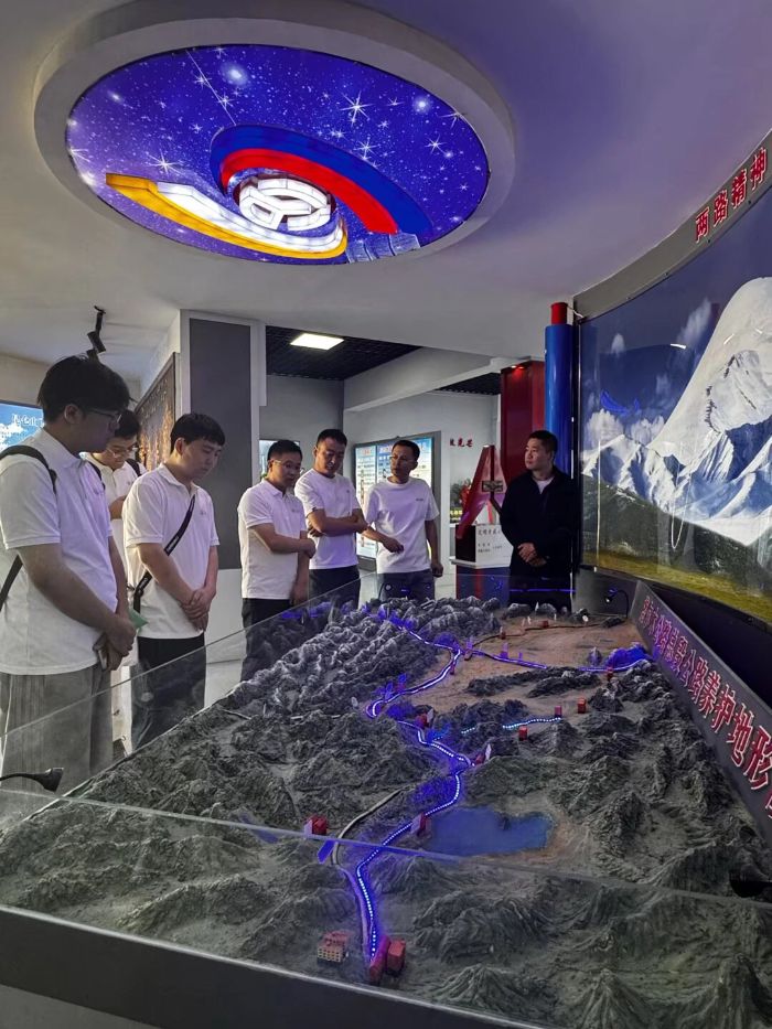 圖為實踐隊員在參觀格爾木公路總段公路養護地形沙盤