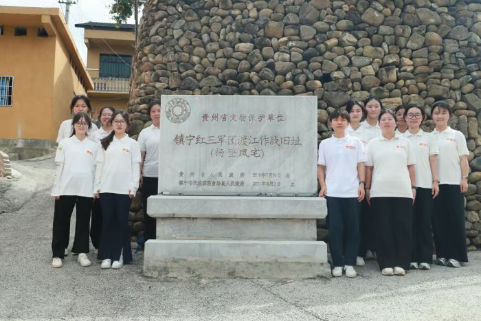 團(tuán)委網(wǎng)站訊(記者徐再楊世英報道|攝影李翊萌陳厚文)“五星紅旗迎風(fēng)飄揚(yáng),勝利歌聲多么響亮……”《歌唱祖國》的旋律響徹在板袍村上方。7月14日,貴州大學(xué)校團(tuán)委“青馬工程”實踐服務(wù)隊來到貴州省安順市鎮(zhèn)寧布依族苗族自治縣,在貴州紅色美麗村莊——板袍村,開展實踐活動,通過參觀紅色遺址、聆聽革命故事、重溫長征歷程,感悟紅色精神,汲取奮進(jìn)力量。