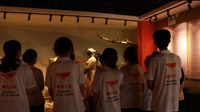 “看到這些銹跡斑斑的軍用水壺、磨損嚴(yán)重的草鞋,仿佛看到了紅軍戰(zhàn)士不畏艱險、英勇奮斗的身影。”實踐隊隊員楊世英感慨道。陳列館內(nèi),收藏著《紅軍長征在安順》、《瀑鄉(xiāng)鎮(zhèn)寧的紅色注事》、《紅軍長征過鎮(zhèn)寧史實》等紅色主題書籍,墻壁上的一幅幅歷史畫卷讓隊員們深刻體會到革命先輩的堅定信念和犧牲精神。