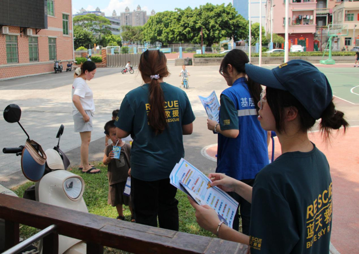 7月9日清晨,廣東科技學院藍天救援突擊隊的隊員們早早的集合完畢后出發前往東莞市東坑鎮黃屋村智慧網格管理工作站,在與基層治理員密切溝通聯系后,開啟了今日份主題工作——夏季防溺水,安全“不掉線”!