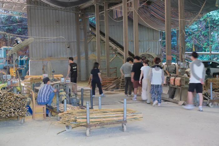 圖為實(shí)踐團(tuán)成員調(diào)研竹制品加工廠