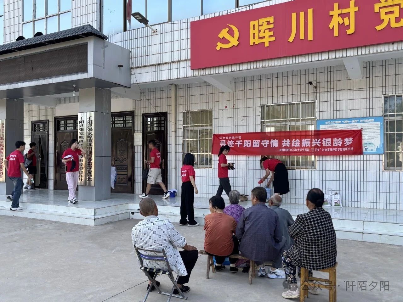 7月14日的清晨,暉川村的炊煙剛漫過青瓦,村委會的院子就響起了木槌敲釘子的聲音。身穿紅馬甲的志愿者們正把一塊印著天安門的背景板釘在白墻上,紅墻黃瓦的圖案在晨霧里漸漸清晰,像從歲月深處走來的約定。