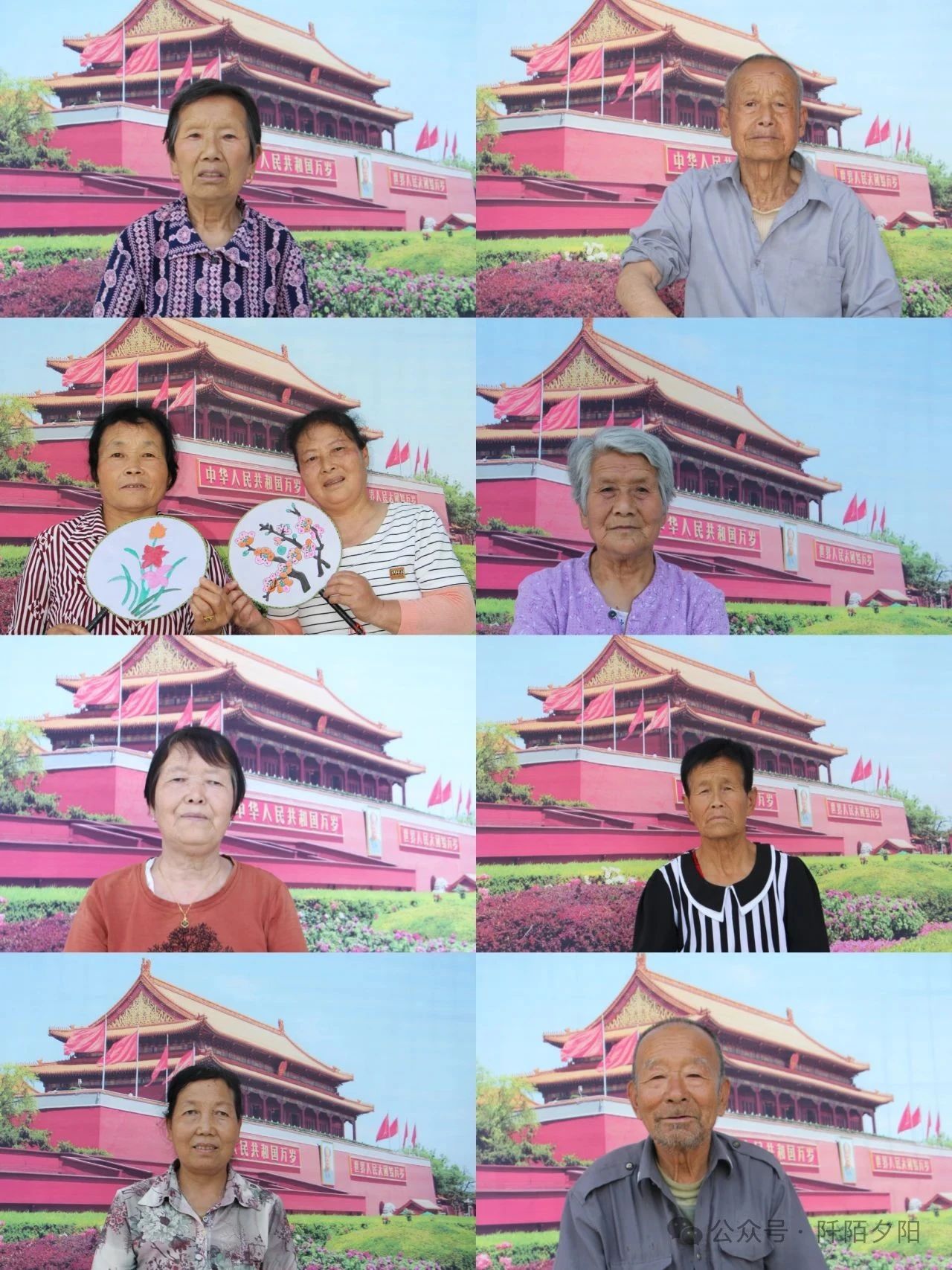 "娃子,這是......"第一個走近的張奶奶攥著藍布帕子,指尖輕輕碰了碰背景板上的城樓。"奶奶,今天給您和天安門拍張照,過兩天給您送家去。"年輕人扶她在小馬扎上坐定,陽光剛好穿過槐樹葉,在她銀白的發間落了點碎金。