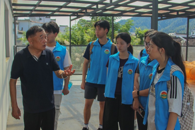 圖為戴根盛師傅向實踐隊員講解傘骨制作過程(供圖:施邵鵬)