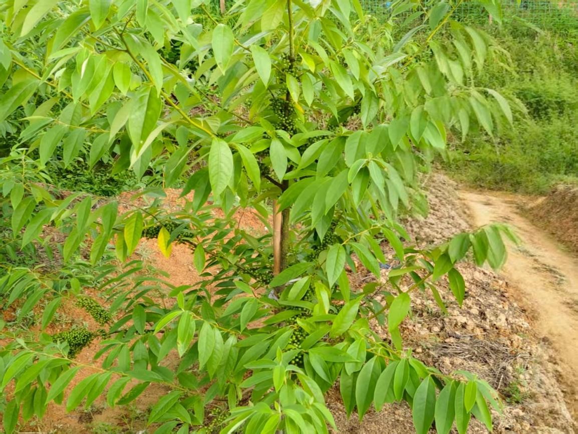 接著,倪林副教授帶領實踐隊員來到山蒼子種植園,向大家介紹山蒼子的雌花、雄花、果實形態,并摘下幾顆果實給實踐隊員觀其色、聞其香、品其味。他深入剖析了山蒼子的次生代謝產物組成及其藥理活性成分,闡釋了種質資源選育與精油提取工藝優化的研究進展,特別就提升精油得率、良種選育等關鍵技術環節進行了專業指導。