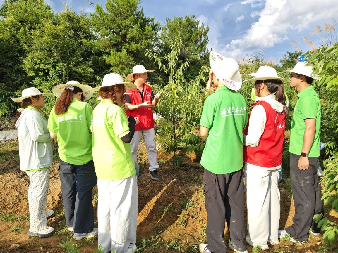 隨后,實踐隊員來到山蒼子-芙蓉李套種試驗田,倪林副教授向大家介紹了山蒼子-芙蓉李復合種植新模式。通過山蒼子揮發油的驅蟲作用抑制芙蓉李的病蟲害發生,顯著降低農藥施用量,提升了果實產量和品質,為構建綠色、環保、可持續的山蒼子-芙蓉李栽培體系提供了新路徑。