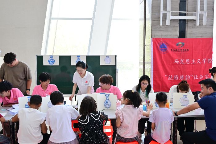 當唐王城千年屯墾文化遇上青春創意與童趣手工,會碰撞出怎樣的火花?7月5日到15日,新疆政法學院“絲路唐韻”社會實踐隊聯合石河子大學相關團隊、“紅領巾小課堂,普法育人”團隊,在新疆屯墾歷史博物館、唐王城千年屯墾文化體驗中心等地開展的“聯動研學·手趣風物志”系列實踐活動,用青年力量解鎖趣味玩法,讓唐王城千年屯墾文化在互動中“活”起來。