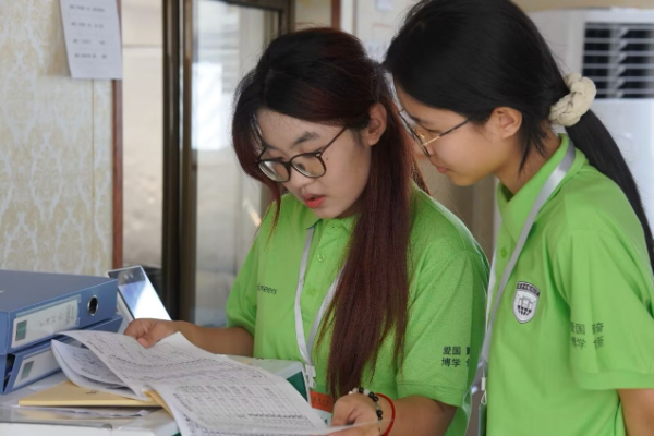 圖為實踐團成員翻看留樣記錄 陳靜涵攝