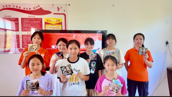 活動伊始,服務隊隊員以湘西本地革命史實為切入點,生動講述劇本中角色背后的英雄故事,幫助孩子們理解革命先輩的理想信念與家國情懷。緊接著,隊員們為孩子們分發了精心設計的角色卡片和劇本,在帶領下逐段圍讀、揣摩臺詞,字里行間的革命精神悄然浸潤心靈。