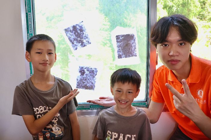 圖為團(tuán)隊(duì)成員帶領(lǐng)孩子們制作種子紙 郭佳晨攝。