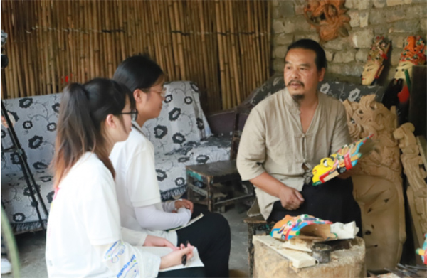 (圖為實踐隊采訪安順木雕傳承人周明老師)