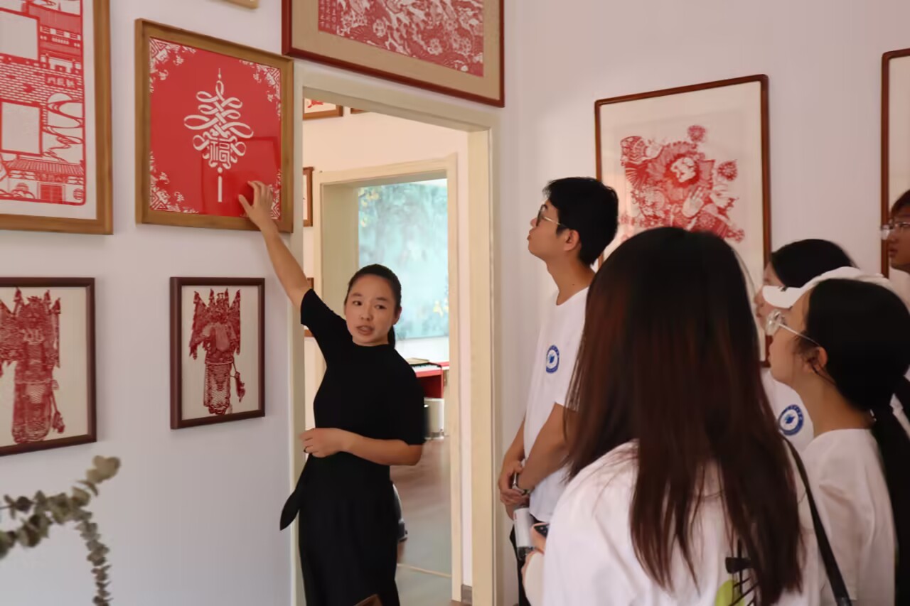 圖為非遺傳承人向支教團成員講授歸德剪紙知識 沈王惠攝
