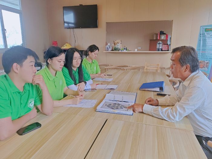 常春藤農(nóng)業(yè)有限公司王森諒先生向?qū)嵺`隊介紹土壤情況