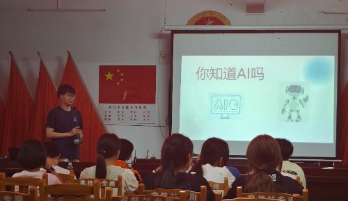 圖為團隊志愿者在鄉村教室為孩子們講授人工智能基礎知識,激發孩子們的科技興趣。
