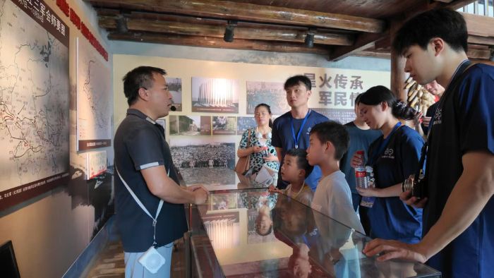 圖為團隊成員帶領孩子們參觀新田縣紅六軍團小源會議舊址紀念館,學習紅色文化。