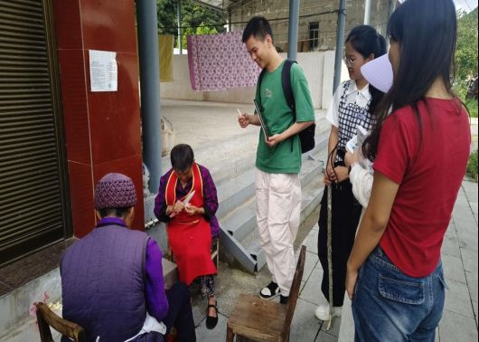 7月8日,團隊深入各村開展入戶走訪,踩著田埂走進村民家中。隊員們一邊幫老人測血壓、記錄數據,一邊遞上問卷,在“今年收成怎么樣”“看病方便不”的家常閑聊里,聽村民講生活變化、說實際需求。從院落里的農具擺設到屋檐下的家長里短,調研在煙火氣中悄然深入,讓實踐腳步扎實踩在鄉土上,也于細微處讀懂民生百態。