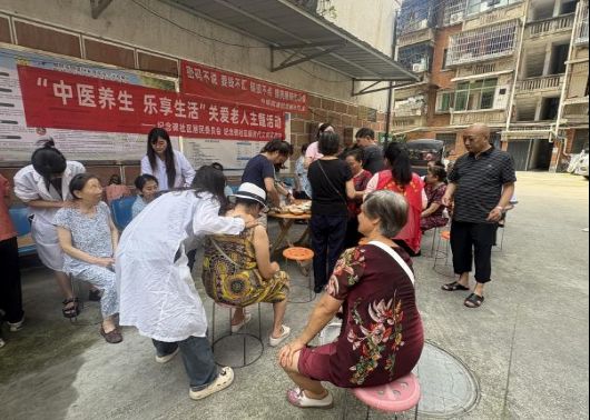 7月10日,團隊一行奔赴紀念碑社區,將健康服務與文化傳播送到居民身邊。活動現場,推拿功法教學率先開講,隊員們結合人體經絡原理,手把手示范頸肩腰腿痛的簡易推拿手法,從按揉力度到穴位找準,耐心指導居民實操練習,不少老人跟著動作嘗試,連連感慨“這樣的法子實用又好記”。