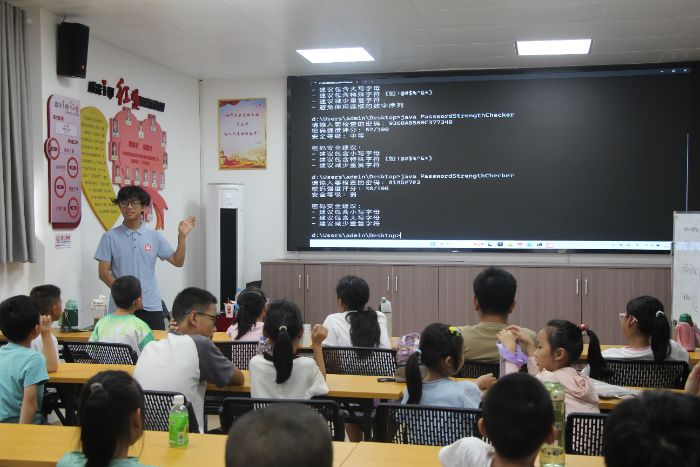 密碼設計大比武:爭當安全小達人 緊隨其后的密碼設計體驗活動,將知識迅速轉化為實踐。實踐隊員講解了密碼的基本設計原則后,小朋友們紛紛動手,精心設計包含多種字符的8-16位專屬密碼。隨后,實踐隊結合專業課程設計的小項目為小朋友們設計的密碼進行“安全體檢”和趣味評分。活動巧妙融合趣味互動與安全教育,不僅有效筑牢了孩子們個人信息保護的“第一道防線”,更在密碼設計的創意碰撞中點燃了他們的思維火花。
