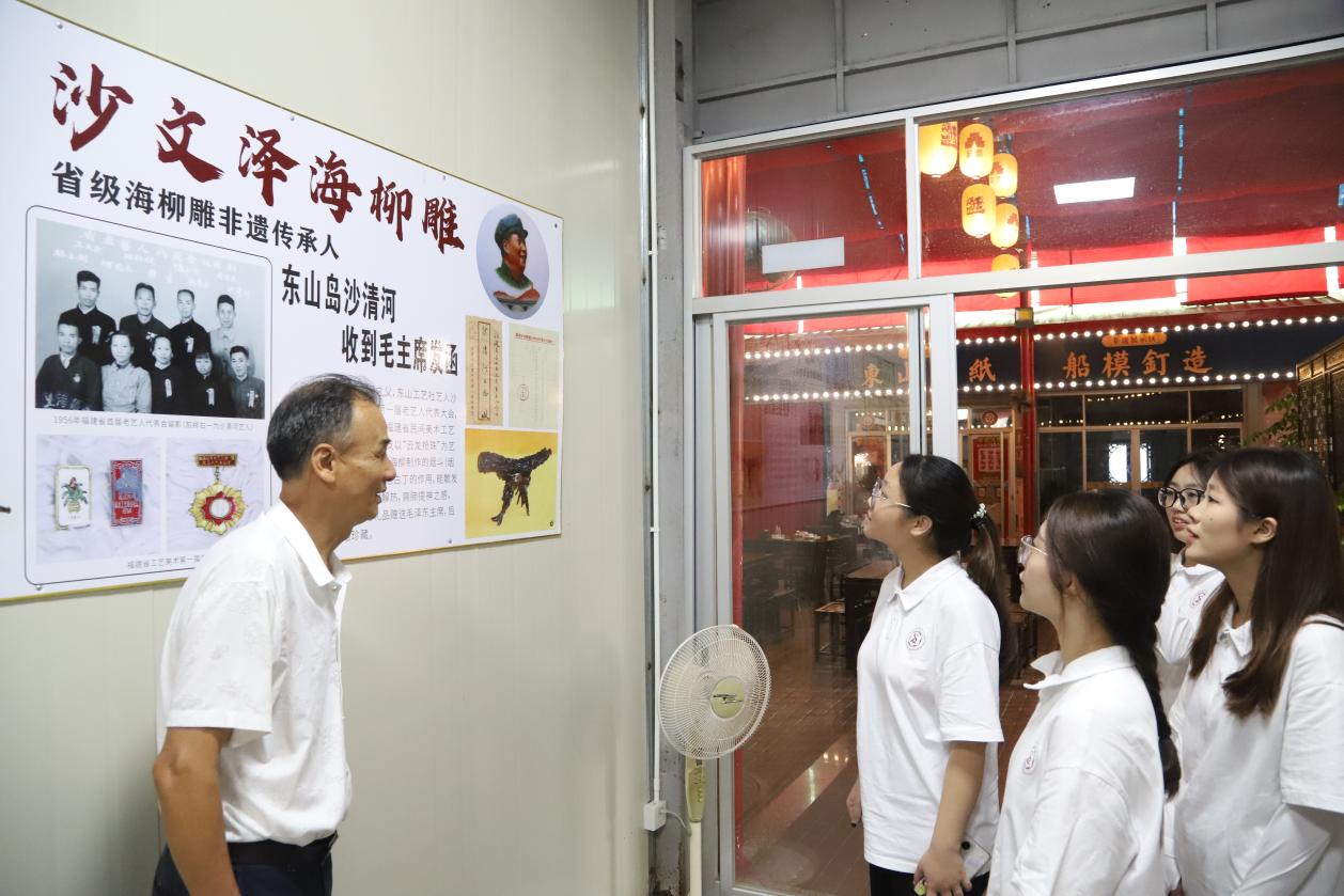 圖為實踐隊成員拜訪海柳雕非遺傳承人沙文澤老師。張炳濤 供圖