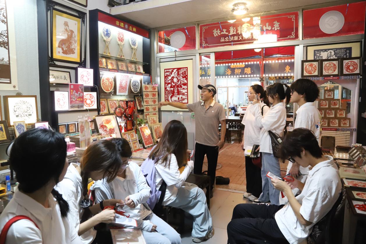 圖為剪紙非遺傳承人程金銘老師為實踐隊成員講解剪紙作品。張炳濤 供圖