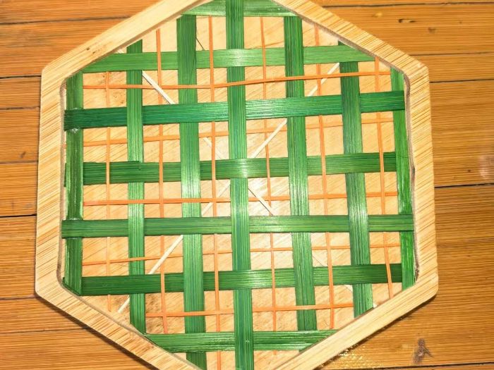 圖為實踐隊隊員制作的穿篾十字編杯墊。羅嬌楊攝