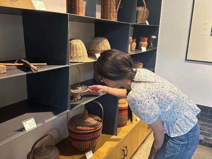 圖為實踐隊隊員在探訪參觀道明村的竹編文化展覽。羅嬌楊攝