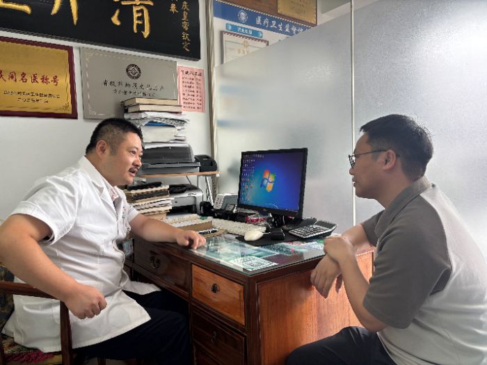 圖為團(tuán)隊(duì)成員在合肥采訪清介堂胡氏中醫(yī)傳承人胡來仙先生。 云美 提供