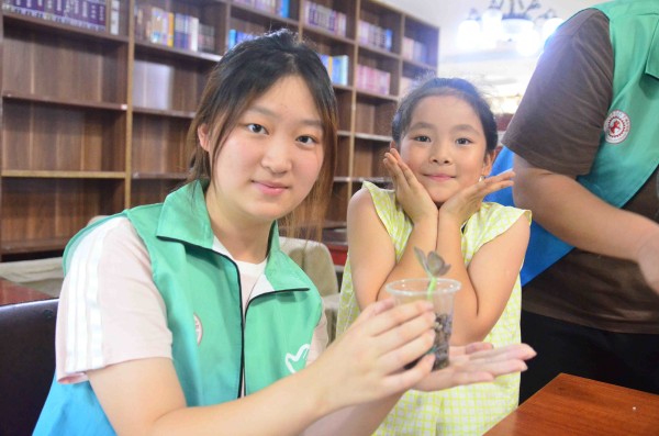 圖為志愿者在帶小朋友們理解植物的“生存密碼”