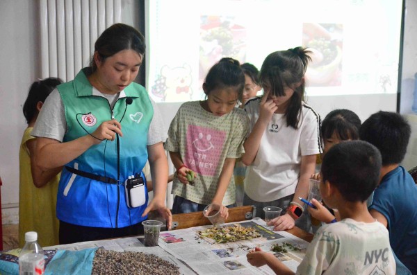 活動(dòng)現(xiàn)場(chǎng),孩子們圍坐在一起,專注地聆聽(tīng)著實(shí)踐團(tuán)成員的講解,眼神中充滿了對(duì)植物世界的好奇。實(shí)踐團(tuán)成員從植物生長(zhǎng)所需的基本要素入手,娓娓道來(lái)植物生長(zhǎng)的奧秘。