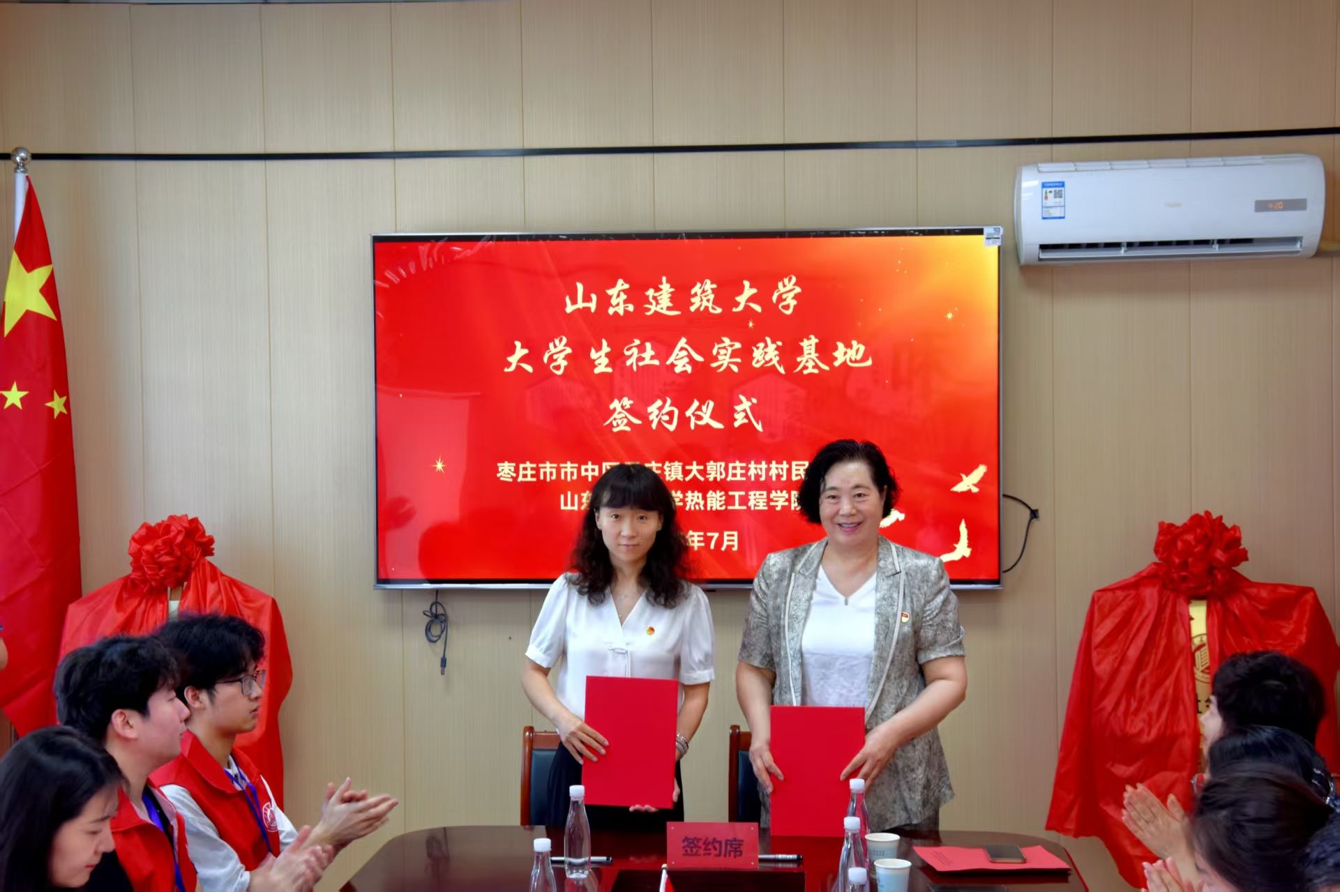為全面貫徹習(xí)近平新時(shí)代中國(guó)特色社會(huì)主義思想,切實(shí)履行引領(lǐng)凝聚青年、組織動(dòng)員青年、聯(lián)系服務(wù)青年的職責(zé),引導(dǎo)大學(xué)生自覺走與實(shí)踐相結(jié)合的成才之路,推動(dòng)社會(huì)實(shí)踐深入開展,7月11日,山東建筑大學(xué)熱能工程學(xué)院在棗莊市孟莊鎮(zhèn)大郭莊村舉行山東建筑大學(xué)校地、校企合作簽約揭牌儀式。棗莊市市中區(qū)團(tuán)委書記高敬娜、副書記石麗,孟莊鎮(zhèn)黨委副書記、政協(xié)委員、聯(lián)絡(luò)室主任渠冠楠,副鎮(zhèn)長(zhǎng)孫婧,社會(huì)事務(wù)管理辦公室副主任宋翠,大郭莊村書記紀(jì)麗,山東蒂夷茗生態(tài)科技農(nóng)業(yè)有限公司總經(jīng)理陳菲,山東建筑大學(xué)熱能工程學(xué)院黨委副書記蔣煒瑋、團(tuán)委書記吳高璇及熱能工程學(xué)院“鄉(xiāng)村振興,'棗'有所成”社會(huì)實(shí)踐團(tuán)隊(duì)成員參加此次簽約儀式,儀式由孫婧主持。