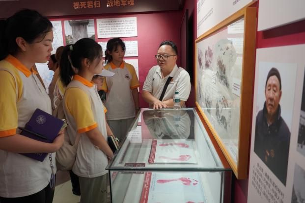移步抗美援朝口述史展廳,周鈴館長(zhǎng)繼續(xù)帶領(lǐng)同學(xué)們深入探索。展廳內(nèi),珍貴的戰(zhàn)士遺物、詳實(shí)的口述影音與圖文史料生動(dòng)再現(xiàn)了那段崢嶸歲月的歷史記憶。其中,一組老兵腳印拓片令同學(xué)們尤為動(dòng)容,在介紹口述史采集與實(shí)物保存工作時(shí),周館長(zhǎng)特別強(qiáng)調(diào):“我們?cè)谧隹谑鍪窌r(shí),尤其要注重人文關(guān)懷。”在周館長(zhǎng)的講述下,同學(xué)們不僅為先輩們保家衛(wèi)國(guó)的崇高精神所深深震撼,更深切體會(huì)到口述史在保存歷史記憶、凝聚民族情感、激勵(lì)后世奮進(jìn)的重要價(jià)值。