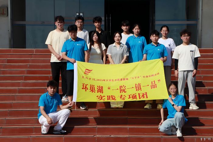 (圖為實踐團成員與王副書記合影,圖中黃色旗幟為“環巢湖‘一院一鎮一品’實踐專項團”隊旗 張玉璽攝)