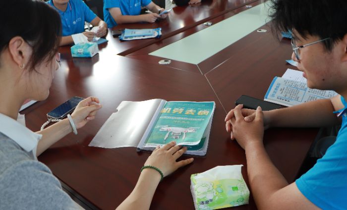 (圖為實踐團成員就科技興農項目與王副書記交流探討,深入了解技術助力鄉村振興的實際需求 張玉璽攝)