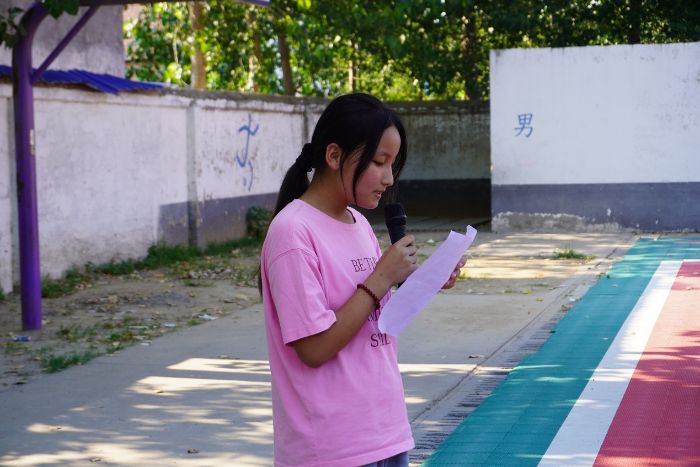 隨后,優秀學生代表崔涵同學發言。她代表全體學生向支教老師表達了深深的感激之情:“謝謝南京航空航天大學的老師們,謝謝你們不遠萬里來看我們,把兩周的時光變成了我們心里最亮的星星。我們會好好吃飯、好好學習,等將來有一天,也像你們一樣,做個能給別人帶來溫暖的人。”崔涵同學的話語樸實而真摯,道出了全體學生的心聲,現場響起了熱烈的掌聲。