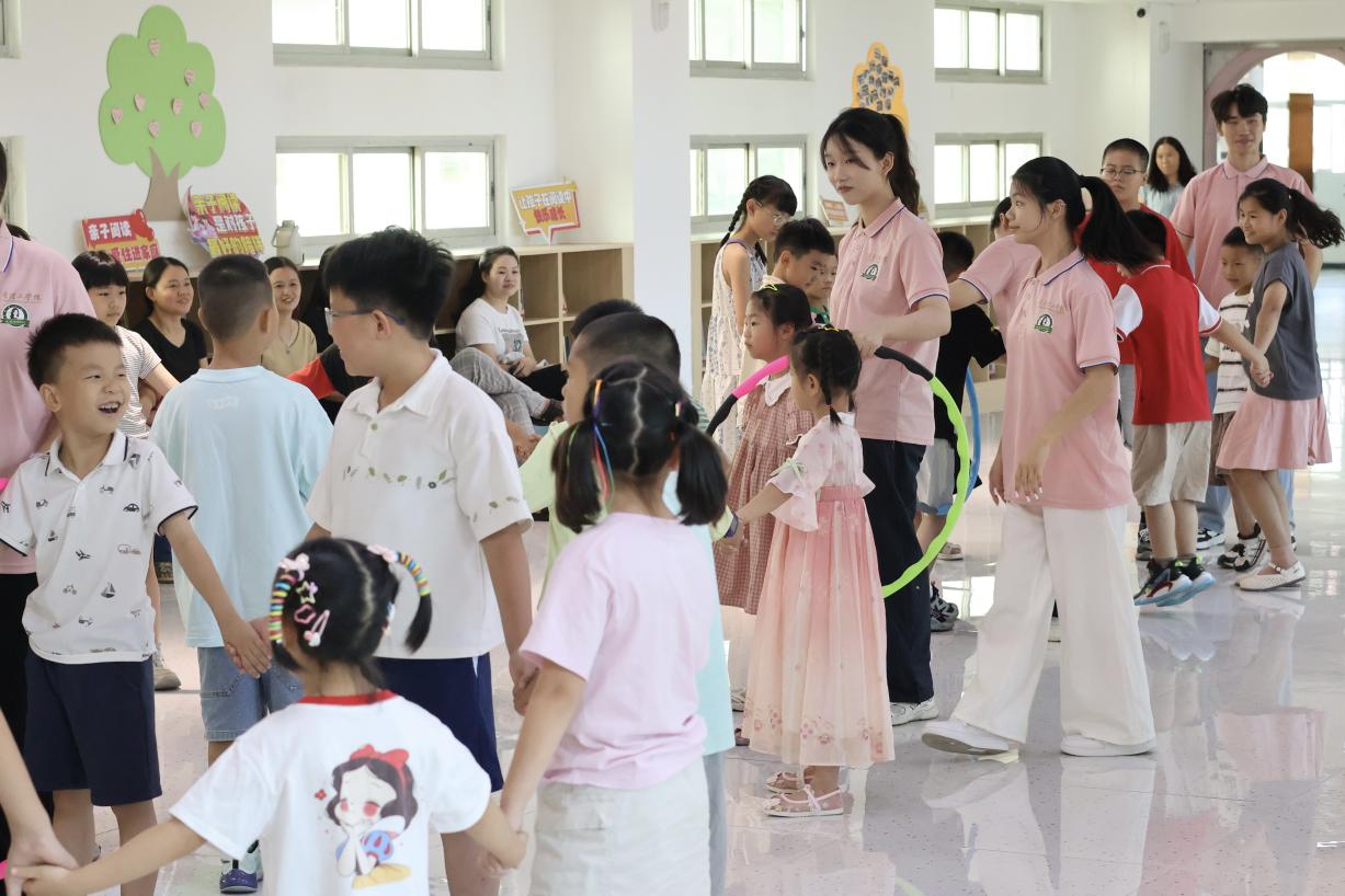 開營儀式結束后,支教隊組織開展系列破冰活動。兒童通過分組圍圈自我介紹及“尋找同伴”互動游戲,快速熟悉彼此姓名;隨后進行的“一圈到底”“左抓右放”“桃花朵朵開”等集體游戲,讓兒童在協作傳遞呼啦圈、反應能力比拼及快速組隊過程中,逐步消除陌生感,深刻體驗團隊協作的重要意義。