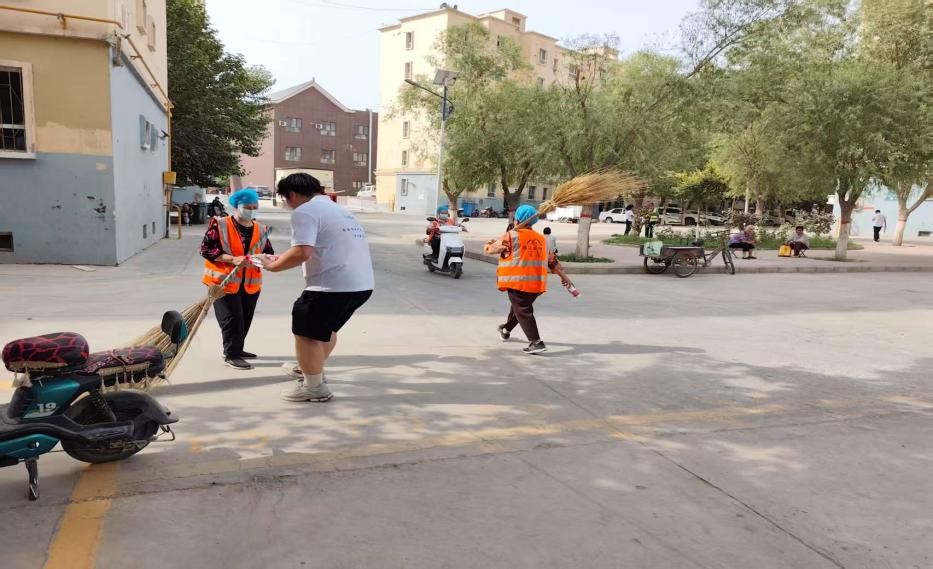 塔里木大學生命科學與技術學院“芯生命·沙海織綠·生態共謀”生態實踐團響應鄉村振興戰略“生態宜居”要求,走進新疆麥蓋提縣刀郎小區,與社區環保人員攜手開展環境衛生清掃志愿服務,以實際行動參與基層生態治理,助力美麗社區建設。