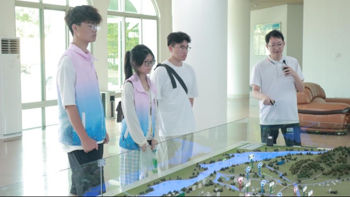 為積極響應廣東省“百縣千鎮萬村高質量發展工程”,深入了解韓江流域水資源保護與治理的實際情況,2025年7月,佛山大學新“韓”路護江隊前往潮州供水樞紐及粵海水務開展探訪活動。通過實地參觀水利工程、與民間河長交流等形式,團隊成員深入探尋韓江流域水資源治理的具體實踐,切身感受水利工程在保障民生與推動區域發展中的重要作用,以青春實踐為“百千萬工程”添磚加瓦。探訪潮州供水樞紐,解碼水利工程智慧 在潮州供水樞紐,工作人員熱情接待了實踐團隊。團隊成員首先參觀了韓江流域圖與韓江下游及三角洲骨干水量調度工程體系沙盤。沙盤中精準呈現了流域內的地形地貌、河流水系分布及水閘、取水口位置,讓隊員們直觀掌握了韓江流域的水情脈絡。