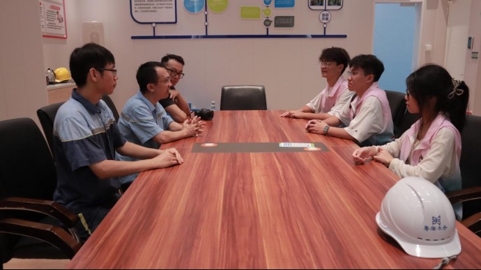圖為團隊隊員與工作人員圍坐會議桌交流(黃悅涵供圖)