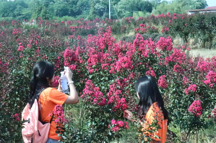 調研團成員參觀紫薇花基地