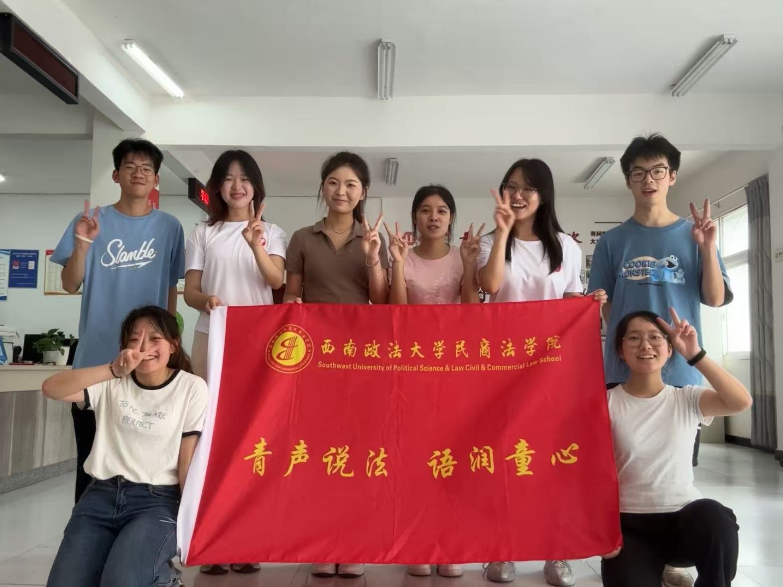 2025年7月8日至17日,西南政法大學民商法學院"青聲說法,語潤童心"社會實踐團隊10名師生赴重慶市黔江區(qū)城南街道青坪社區(qū)李家溪易地扶貧搬遷集中安置區(qū),開展了為期9天的"推廣普及國家通用語言文字助力鄉(xiāng)村振興"主題實踐活動。這支由民商法學院本科2024級團總支書記孫悅齊帶隊、趙婧旸老師指導的團隊,充分發(fā)揮法學專業(yè)優(yōu)勢,創(chuàng)新"推普+"模式,將普通話推廣與法治教育、文化傳承、表達訓練深度融合,為當?shù)貎和瘞砹艘粓鰟e開生面的語言文化盛宴。