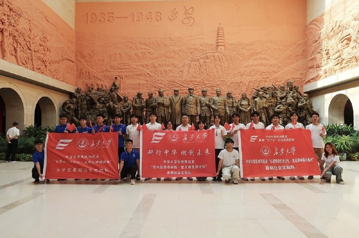圖為實踐隊在延安革命紀念館前合影 梁雨攝