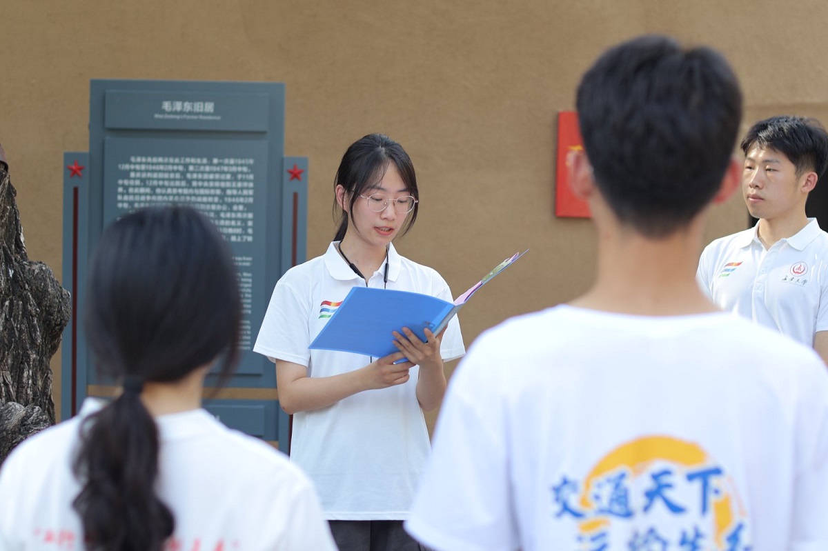 隨后,實踐隊來到了王家坪革命舊址。這里曾是中共中央革命軍事委員會和八路軍總部所在地,中央軍委和八路軍總部在這里指揮部署了敵后根據地軍民的八年抗戰。步入舊址,軍委禮堂墻壁上斑駁的照片、偉人舊居簡陋的陳設……隊員們仿佛走進了那段烽火連天的革命歲月和運籌帷幄的輝煌歷史。在簡樸的窯洞院落里,隊員朱詩瑜向隊員們詳細講述了在王家坪發生的一系列重要歷史事件,深刻闡釋了老一輩革命家嚴于律己、艱苦奮斗的優良作風,為實踐隊員們上了一堂生動的“紅色初心”課。