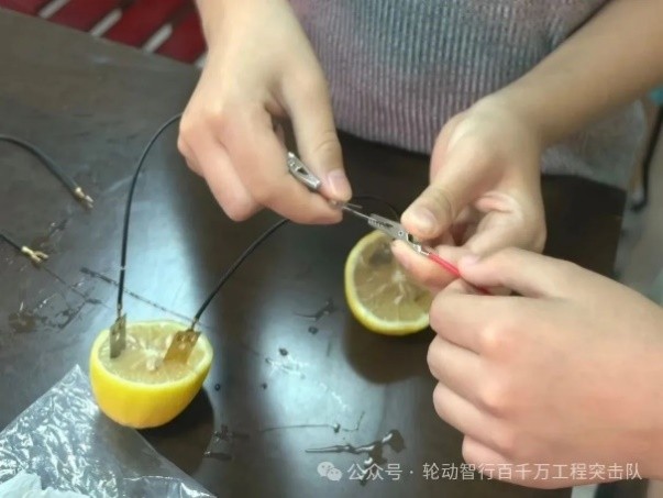 圖2為孩子們正在制作水果電池 田明達/攝
