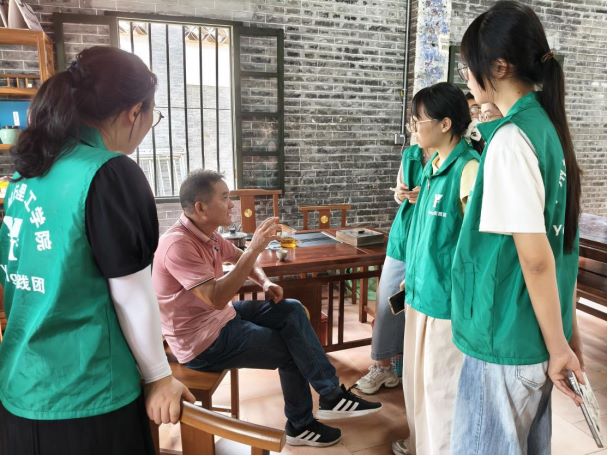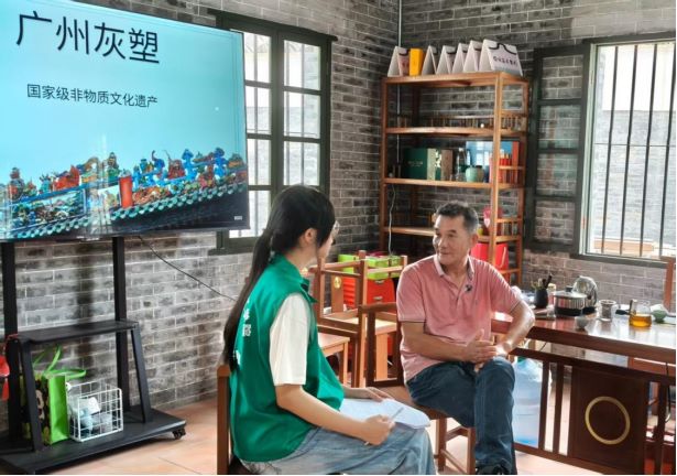在采訪中,Young實踐團成員圍繞邵成村老師的個人傳承經歷、灰塑技藝實踐與修復、行業精神與價值等方面內容開展互動。邵成村老師都一一進行了回復,讓同學們再次體會到了中式美學獨有的浪漫與手工匠人精益求精的品格。當邵成村老師坦言自15歲時跟隨父親學習灰塑,自此和灰塑打了一輩子交道,最難的就是堅持和堅韌,Young實踐團被他對灰塑藝術的執著深深感動;當邵成村老師談到他和團隊參與修復的名勝古跡、祠堂廟宇已達上百座,每次修復都會根據當地的風土人情及每一項工藝技術的特點針對性地開展工作,Young實踐團不禁為他傳承、弘揚中華優秀傳統文化的超高技藝和高尚情懷點贊;當得知邵成村老師不僅在中小學帶著學生手把手地感受灰塑,在華工、中大等高校開設灰塑專題課程,還常被公派出國面向華僑、留學生講學時,紛紛為他積極繼續推進灰塑普及教育和科研,“讓灰塑煥發新生”的使命感和責任感點贊。