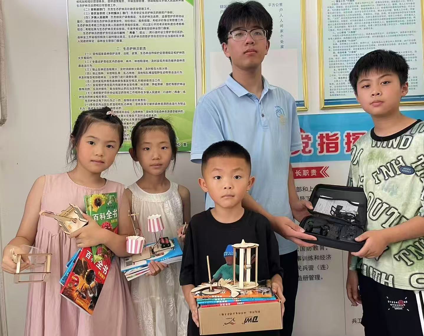 活動(dòng)中,實(shí)踐隊(duì)向孩子們贈(zèng)送了《趣味物理實(shí)驗(yàn)》《昆蟲(chóng)記》《航空航天小百科》等50余本科普書(shū)籍。“這些書(shū)里有很多動(dòng)手做實(shí)驗(yàn)的方法,還有宇宙和大自然的秘密,希望大家能像探險(xiǎn)家一樣去發(fā)現(xiàn)科學(xué)的樂(lè)趣。”成員們?cè)谫?zèng)書(shū)儀式上說(shuō)道。